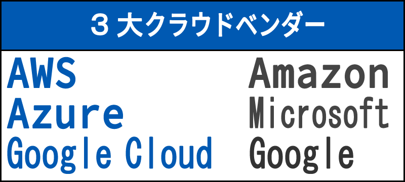 世界的に大きなシェアを握って、クラウドサービスと聞いて連想するのはこの3社じゃないでしょうか?